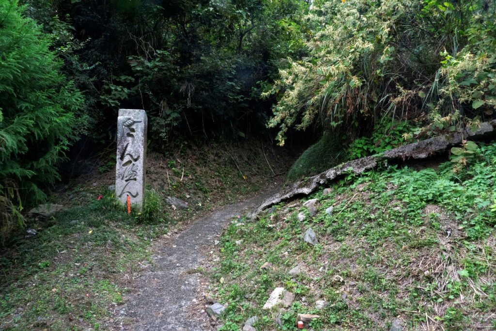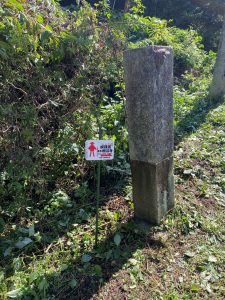 国道から境目峠への分かれ道には古い道標がありますが、草が繁って隠れていたので、刈っておきました。
