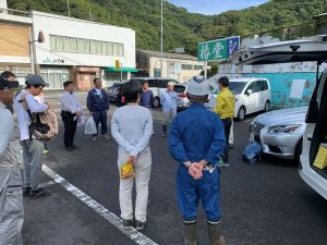 椿堂で集合して、打合せを行います。今回は四国経済連合会の皆さんと合同作業です。