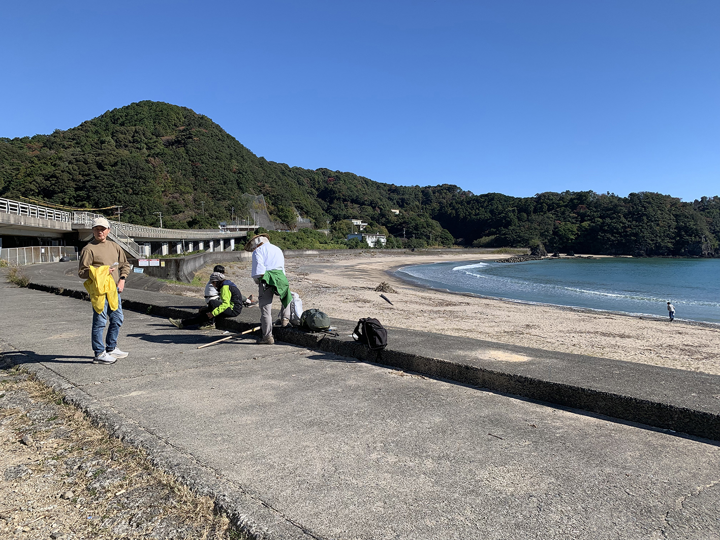 内妻浜まで下りてきました。じつはここはサーフィンのメッカです。